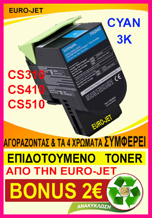ΣΥΜΒΑΤΟ TONER LEXMARK CS310, CS410, CS510 702HC CYAN 3K , 70C2HC0 ΣΥΜΒΑΤΟ TONER LEXMARK CS310, CS410, CS510 702HC CYAN 3K , 70C2HC0 ΣΥΜΒΑΤΟ TONER LEXMARK CS310, CS410, CS510 702HC CYAN 3K , 70C2HC0
