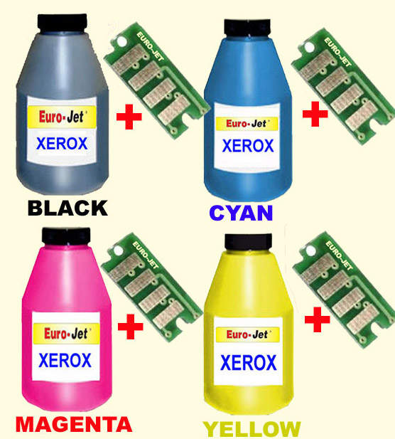 SET  ΑΠΟ 4 ΒΟTTLES TONER  BLACK+CYAN+MAGENTA+YELLOW KAI ΑΠΟ 4 CHIP